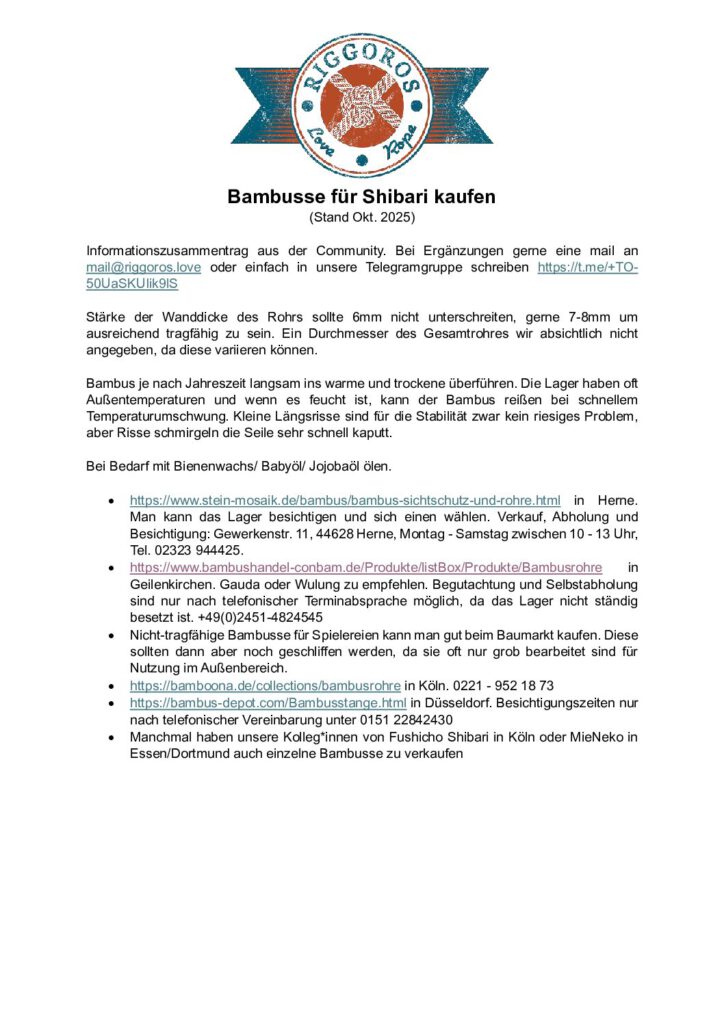 In dieser Checkliste haben wir die wichtigsten Punkte für euch zusammengefasst, die es bei einem Erstgespräch zwischen Model und Rigger vor dem Fesseln zu beachten gilt. Diese Checkliste ist auch als „Greencard“ bei den RIGGOROS-Treffen erhältlich. Weiter unten bei den Dokumenten findet ihr auch eine ausführliche Version von Fragen, die man sich und seinem Fesselpartner vor dem Fesseln stellen kann.m das eigene Risikoprofil und das des Partners auszuloten.